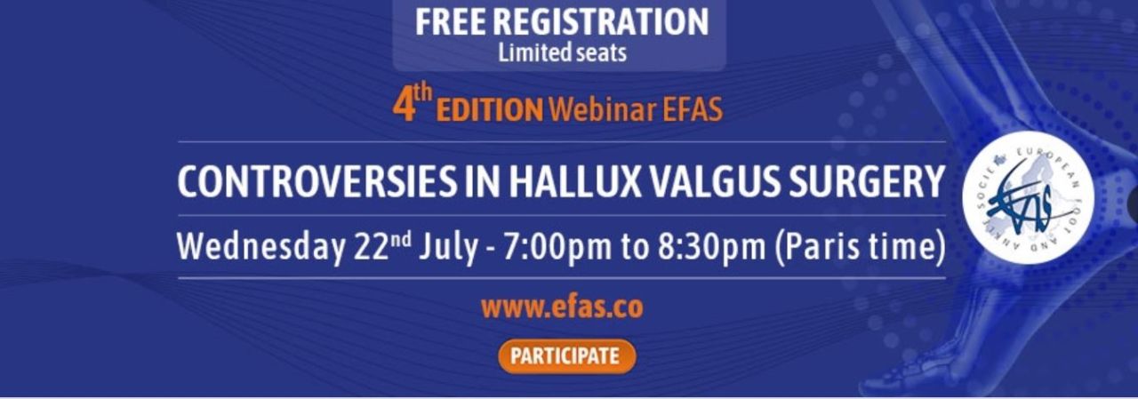 Mercoledì 22 luglio si è svolto il webinar di EFAS intitolato “Controversie in chirurgia dell’alluce valgo”.